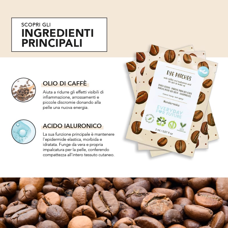 Wondermoka with coffee anche hyaluronic acid for skin to wake up.