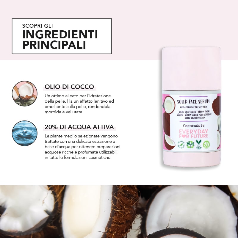 Idrata il tuo viso e lenisci i rossori con il Siero Viso Solido Idratante Cococuddle!